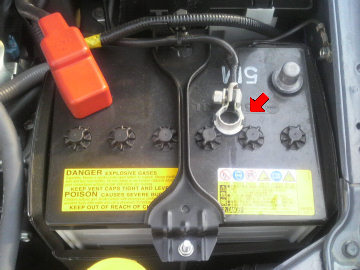 アース端子はご丁寧にヒューズボックス上側にあります。